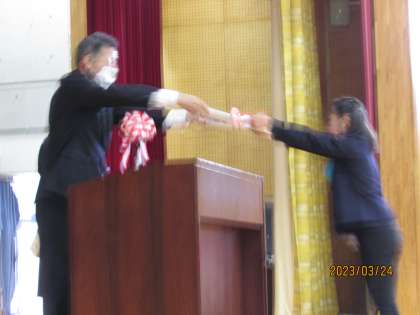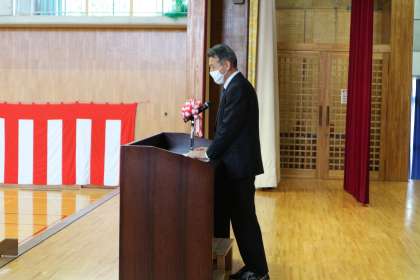 本日は、令和4年度最後の登校日であり、修了式を行いました。各学級の代表者に修了証(通知表裏面)を授与し、児童代表のスピーチと校長の話、校歌斉唱の式次第で行いました。