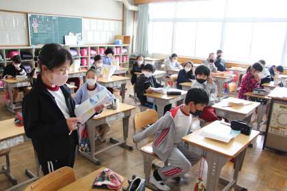 5年生の国語「ぼくらのもの」の授業の様子をお知らせします。本時は、いかに正確に早く読めるかを目標に、音読の仕方を練習しました。
