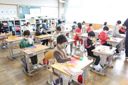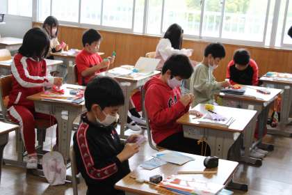 4年生算数 公開日 2023/04/12 更新日 2023/04/12 お知らせ 4年生の算数「角とその大きさ」の授業の様子をお知らせします。これから授業を進めるにあたって、理解が深まるように「丸く開くおうぎ」を作りました。 子どもたちの理解に最も大切なものは、実物を操作することだと思います。パッと見て角度がわかるような教材づくりをしている場面です。