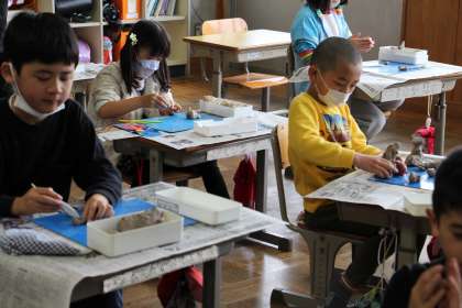 2年生図工 公開日 2023/04/12 更新日 2023/04/12 お知らせ 2年生の図工「生きているものをつくろう」の授業の様子をお知らせします。子どもたちは、ねんど学習が大好きです。私の経験から考えると、ねんど(もともとは土)や田んぼの土を触ると、人は落ち着きます。もっとも簡単に自然と触れ合うことができるからだと思います。 本来なら、足湯に行き、足湯体験の予定でしたが、天候が心配なので明日に延期しました。足湯(温泉)も、人が落ち着く「自然の恵み」だと思うので、明日が楽しみですね!