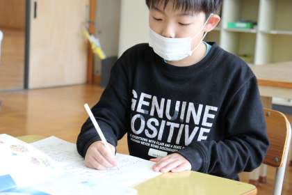 あすなろ学級の授業の様子をお知らせします。絵カードを見て、どんな気持ちかを考える授業と、国語の文をていねいに視写する授業でした。