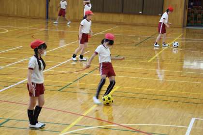 体育は、ボールを蹴る運動でした。今の子は、「蹴る」はもちろん、「投げる」活動も、小さい時の遊びの中の経験値が少ないので、数多くやらせたいと思います。