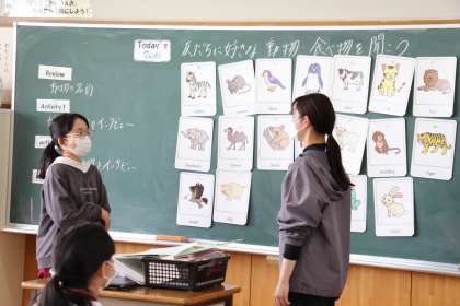 6年生外国語 公開日 2023/04/24 更新日 2023/04/24 お知らせ 6年生の外国語「What animals do you like?」の受け答えについて学習しました。これから外国の人と話す際に、相手に好きなこと、ものなど聞く機会は多いと思うので、本時の学習はとても役に立つと思います!