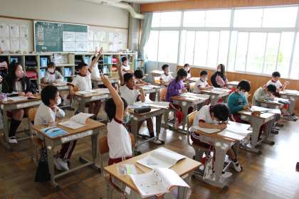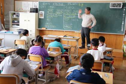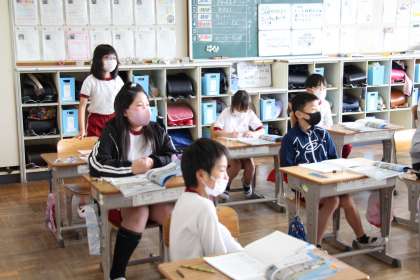 4年生の理科と算数の授業の様子をお知らせします。理科は、教頭が受けもっています。本時は「天気と気温」について学びました。