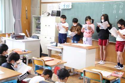 4年生国語 公開日 2023/04/25 更新日 2023/04/25 お知らせ 4年生の国語「こわれた千の楽器」の授業の様子をお知らせします。4年生も音読の練習です。グループで役割を分けて、音読発表会に向けて練習しています。 本時は、他のグループに聴いてもらい、お互いにアドバイスをし合う授業でした。