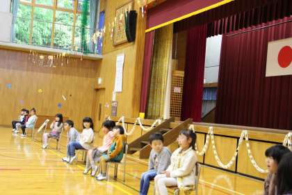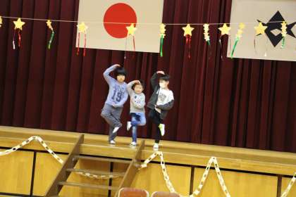入学を祝う会1 公開日 2023/04/26 更新日 2023/04/26 お知らせ 本日、「入学を祝う会」を開催しました。各学年の子どもたちの活動の様子をお知らせします。 3年生の児童と一緒にポーズをとりながら入場しました。また、1年生の頭上に輝く「キラキラスターズ」も、3年生が作製しました。