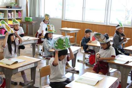 1年生の授業 公開日 2023/04/27 更新日 2023/04/27 お知らせ 1年生の生活と国語の授業の様子をお知らせします。生活ではサツマイモの苗を植えました。マルチに穴をあけ、土を掘ってから、水をたっぷり与えました。そこに苗を斜めになるように植え、土をかぶせて完成です。 国語では、役割ごとにお面をかぶり、その役になりきって読むことができました。