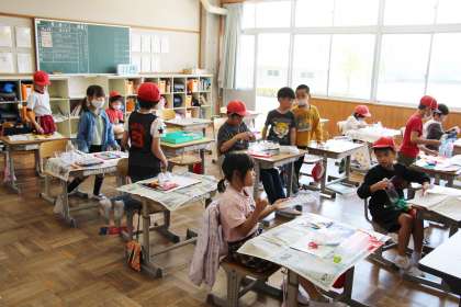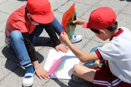 2年生図工 公開日 2023/05/11 更新日 2023/05/11 お知らせ 2年生の図工「色の見え方無限大」の授業の様子をお知らせします。透明な容器に、マジックで書いたり、セロファンを貼ったりして、いろいろな光の見え方を楽しむ教材です。 まずは、セロファンを組み合わせていろいろな色ができることを楽しんでから。作成に入りました。