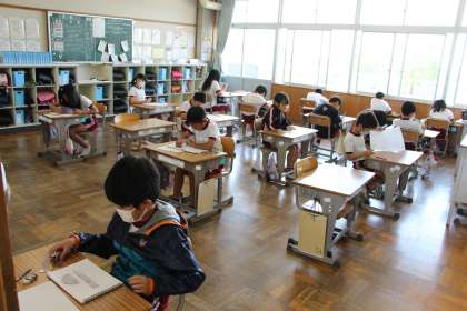 今日の4年生と5年生の授業(単元テスト)の様子をお知らせします。どちらも算数のテストを行っていました。