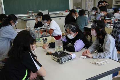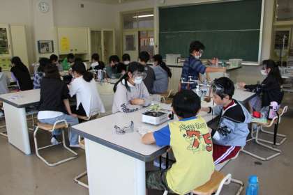 6年生理科 公開日 2023/05/17 更新日 2023/05/17 お知らせ 6年生の理科「植物の葉に日光が当たると、葉にデンプンができるか」の実験を行いました。この実験は、まずアルミ箔をかぶせておいた葉を煮て、デンプンがないことを確かめ(本時)、その後日光を当てた葉にデンプンがあるかどうかを調べる実験です。(本日の午後から)