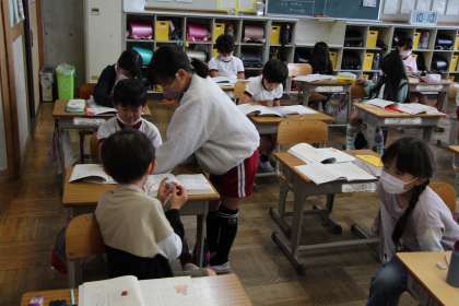 3年生国語 公開日 2023/05/19 更新日 2023/05/19 お知らせ 3年生の国語「辞書引き」の授業の様子をお知らせします。3年生では辞書を引く授業が定番です。私は、紙の辞書を触ることはとても大切だと思います。 先日、絵本作家さんの講演を聞きましたが、デジタルの絵本と紙の絵本がありますが、「紙の絵本」を子どもたちに読ませてください。紙の厚みやにおい、めくるときの音など、五感を使って読むことがとても大切なんですと言われていました。