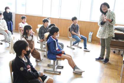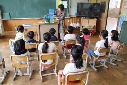 本日は、いしボラさんによる読み聞かせ(お話出てこい)の日でした。子どもたちは、毎回、この読み聞かせを楽しみにしています。いつも以上に目を輝かせ、お話を聴いていました。