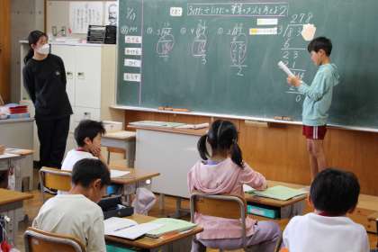 4年生算数 公開日 2023/05/29 更新日 2023/05/29 お知らせ 4年生の算数「1けたでわるわり算の筆算」の授業の様子をお知らせします。このわり算の筆算は、「たてる」「かける」「ひく」「おろす」という公式のような考え方をしっかり身に付けることが大切です。