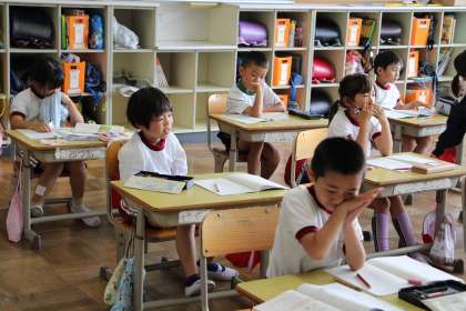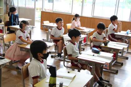 2年生の体育と算数の授業の様子をお知らせします。体育は外で体を動かしました。高学年の動きに刺激され、より活発に行動しました。
