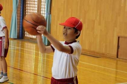 あすくす学級の授業の様子をお知らせします。あすなろ学級は、交流体育のバスケットボールのボールを投げる、受けるの授業でした。