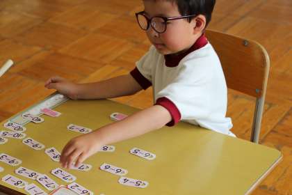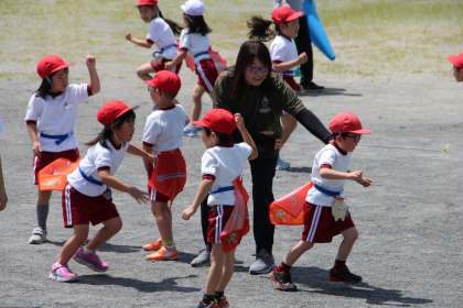 くすのき学級も交流の体育と算数の様子です。体育は、じゃんけんで負けたら逃げる、勝ったら追いかけて相手のタグをとる授業で、必死で逃げている場面です。