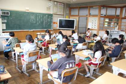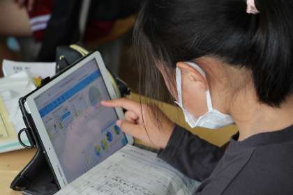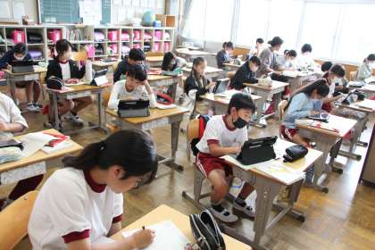 5年生の国語「環境問題について発表しよう」の授業の様子をお知らせします。タブレットを使って調べたことを、まとめる授業でした。