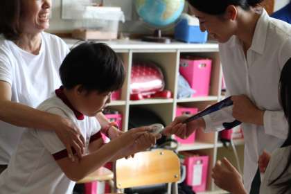 あすくす学級の授業 公開日 2023/06/07 更新日 2023/06/07 お知らせ あすくす学級の授業の様子をお知らせします。あすなろ学級は、玉ねぎをひもで縛る作業と、夢の教室で銀メダルを触らせてもらっている場面です。くすのき学級は算数で、同じ答えになる式(カード)を線で結ぶ学習でした。