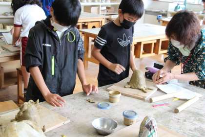 各学年が作製した時に欠席などの理由でできなかった子の「陶芸作品づくり」を行いました。今回も地域コーディネーターのお二人の力をお借りして、気持ちのこもった作品ができました。
