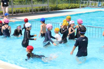 低学年プール開き2 公開日 2023/06/13 更新日 2023/06/13 お知らせ 体操、水慣れの後、宝探しを行いました。水面の宝は簡単に取れますが、水中や水底の宝は、潜って取る必要が出てきます。そんなことは、お茶の子さいさいと積極的に活動することができました。