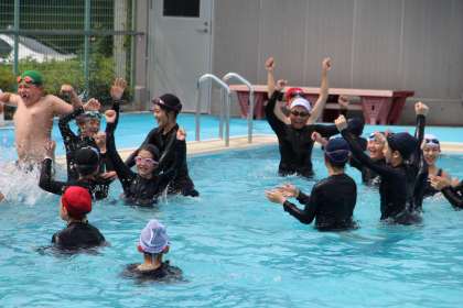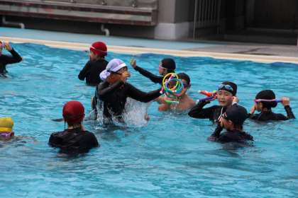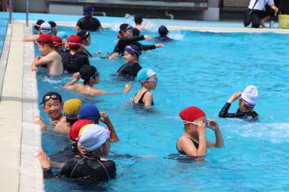 高学年プール開き 公開日 2023/06/13 更新日 2023/06/13 お知らせ 高学年のプール開きは、5時間目でした。この時期でもプールサイドの気温はなんと「32度」を超えていました。子どもたちにとっては、最高に気持ちのよいひと時だったようです。ウォーミングアップとして、恒例の宝さがしと水中ランニングを行いました。5年生VS6年生は、何をやってもいい勝負ですが、本時は6年生の勝利でした。