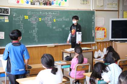 5年生算数 公開日 2023/06/14 更新日 2023/06/14 お知らせ 5年生の算数「複雑な小数の割り算の筆算」の授業の様子をお知らせします。算数が苦手よりも、面倒な作業が苦手な子ができない問題です。 まず、小数点を整理して、問題を解くのですが、答えが0よりも小さくなる問題は、さらに注意が必要です。慌てずに、じっくり取り組んでほしいと思います。