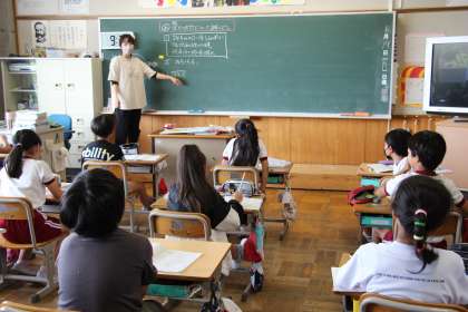5年生の算数と外国語の授業の様子をお知らせします。算数は、余りのある小数の割り算の文章題問題でした。算数が苦手な人にとっては、フルコースに近いメニューです。まずきちんと式を立てることが大切です。