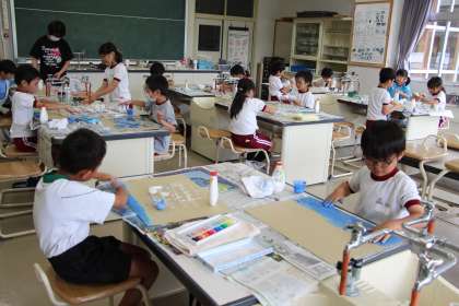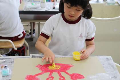 2年生図工 公開日 2023/06/27 更新日 2023/06/27 お知らせ 2年生の図工「とろとろえのぐ」の授業の様子をお知らせします。水をあまり入れずに。絵の具を「トロトロ」の状態で、主に指を使って絵を描きました。筆などの道具を使わない分、逆に描きやすかったのではないでしょうか。