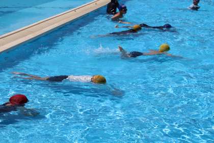 2年生の体育と国語の授業の様子をお知らせします。体育は水に長く浮く練習でした。手足をバタバタせず、力を抜くことがポイントです。