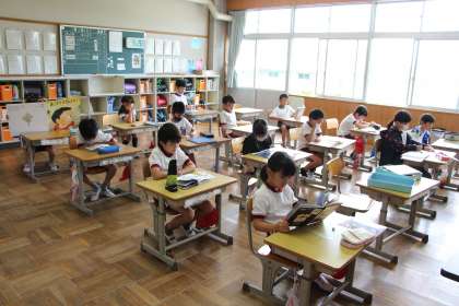 国語は、漢字練習の合間に読書をしている場面です。私が寄贈した「おこだでませんように」の大型絵本も、借りて読んでくれる子がいました。