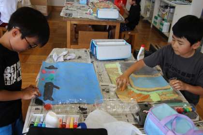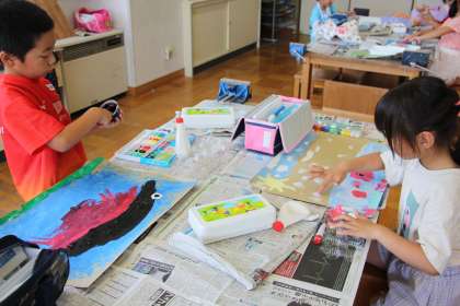 2年生図工 公開日 2023/07/06 更新日 2023/07/06 お知らせ 2年生の図工「とろとろ絵の具」の授業の様子をお知らせします。絵の具を水で溶かずに、指を使って描く方法で絵を完成させました。 水彩画とは違って、濃く表現されているし、立体感もあり、描かれたものの存在感がありありでした!