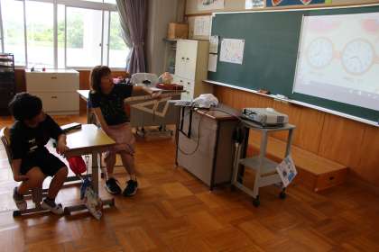 あすなろ学級の授業 公開日 2023/07/12 更新日 2023/07/12 お知らせ あすなろ学級の道徳、国語、算数の授業の様子をお知らせします。国語の授業では「後回し」という意味が分からず、国語辞典を引いて確認しました。道徳や算数は大型モニターの映像資料を使って学びました。