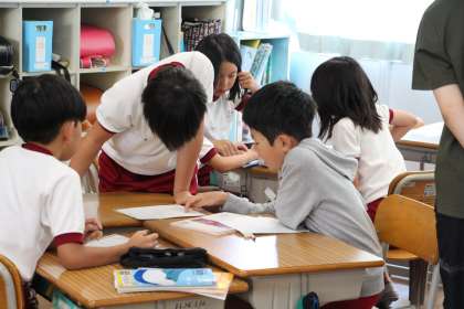 4年生算数 公開日 2023/07/18 更新日 2023/07/18 お知らせ 4年生の算数「小数」の授業の様子をお知らせします。本時は、「m」で表された長さを「km」で表すとどうなるかを考えながら、小数のしくみを学びました。 本時は、グループでよくわかる子が、なんとなくわかる子、あまりわからな子に教え、伝える学習でした。世の中にはたくさんの小数が出てきますが、学びのスタートは4年生でした。
