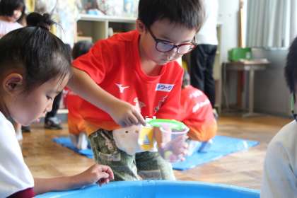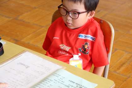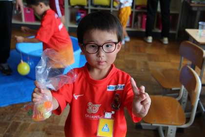くすのき学級の夏休みの生活の確認とお楽しみ会の様子をお知らせします。水風船を早々と釣り上げ、スーパーボール救いに夢中でした。最後に戦利品を見せてくれました。