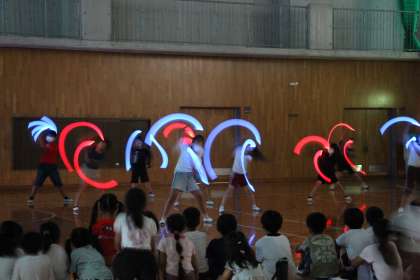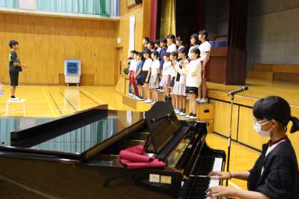 全校集会2 公開日 2023/07/20 更新日 2023/07/20 お知らせ 5年生と6年生の学年発表の様子をお知らせします。5年生はキャンプで取り組んだ「サイリウム」を全校のみんなにも見てもらいました。 6年生は「音楽発表」です。ピアノとリコーダーの演奏に合わせて「星空はいつも」を歌いました。石畳小の「あいうえお」の「うたごえ」をやっと披露できました。