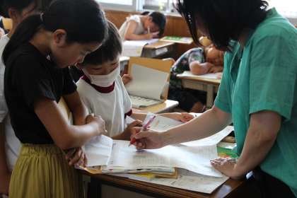3年生の算数「長さ」のまとめの様子をお知らせします。単元テストが返却され、自分で知識定着を測ったり、友達と教え合いをしたり、わからないことを担任に聞いたりと、様々な方法で復習をしました。