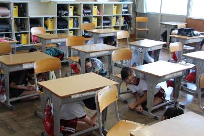 3年生の授業 公開日 2023/09/01 更新日 2023/09/01 お知らせ 3年生の授業の様子をお知らせします。シェイクアウト訓練で机の下に避難している様子と、夏休みの反省や活動の振り返りの様子です。 9月に入ると明日の朝市でのインタビュー活動等、学習活動の中身が濃くなってきます。しっかり考えて、自分の意見を主張する活動を期待しています。