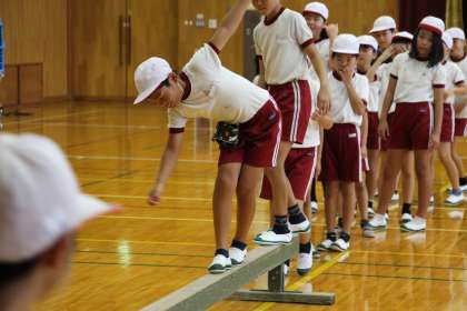 4年生体育 公開日 2023/09/04 更新日 2023/09/04 お知らせ 4年生の体育「平均台運動」の授業の様子をお知らせします。平均台では、バランス力が大切です。手を広げてバランスを保ったり、より難しい技に挑戦しようと片足でジャンプをしたりして、平均台を楽しみながら学びました。