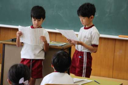2年生国語 公開日 2023/09/08 更新日 2023/09/08 お知らせ 2年生の国語「うれしくなることばをあつめよう」の授業の様子をお知らせします。定例文の中に自分がうれしかった言葉を入れ、ペアで紹介し合う学習です。 各自が「うれしかった言葉」を発表するたびに、温かい雰囲気が流れ、とてもいい雰囲気の授業となりました。