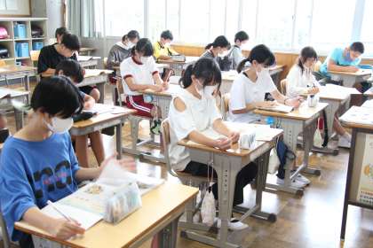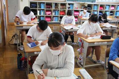 6年生道徳 公開日 2023/09/08 更新日 2023/09/08 お知らせ 6年生の道徳「言葉のおくり物 男女ともに信頼して」の授業の様子をお知らせします。男女関係を冷やかす場面から、言葉の力(大切さ)を考える授業でした。ちょうど思春期に当たり、男女を意識し始める時期でもあるので、この教材に真剣に取り組んでいました。 この授業を通して「人があるべき姿」を考えてくれたことと思います。