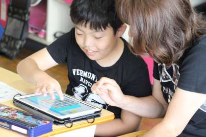 あすなろ学級の授業 公開日 2023/09/08 更新日 2023/09/08 お知らせ あすなろ学級の授業の様子をお知らせします。絵本の読み聞かせ、国語の漢字練習、外国語の授業の様子です。 外国語は「I can 〜.」をタブレットを使って答える場面ですが、とても楽しく活動できた様子が表情からもわかります。