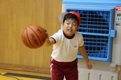 体育はバスケットボールの、「連続ドリブル5回」に挑戦しました。