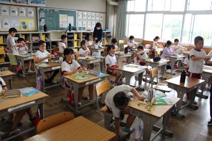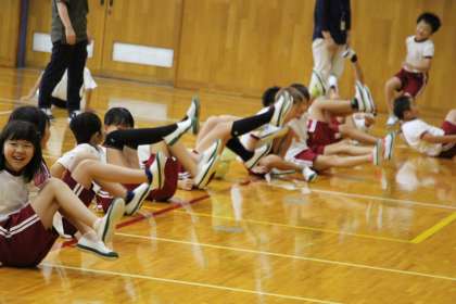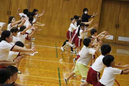 3年生の体育と算数、防犯教室の様子をお知らせします。体育は運動会の表現種目「ソーラン」です。さっそく元気な姿が見られました。