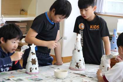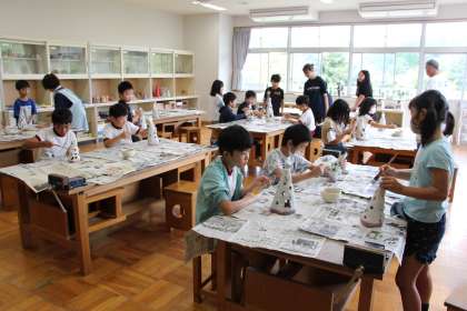 4年生陶芸 公開日 2023/09/14 更新日 2023/09/14 お知らせ 4年生の陶芸「釉薬塗り」の様子をお知らせします。4年生は「ランプシェード」を作っているので、複雑な形や模様もあり、隙間なく慎重に塗っていました。