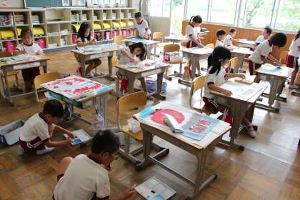 1年生の授業 公開日 2023/09/20 更新日 2023/09/20 お知らせ 1年生の国語、図工、音楽の授業の様子をお知らせします。国語は「かいがら」に取り組んでいます。くまの子とうさぎの子の、心温まる日常を描いた作品です。「にっこりしたわけは…?」を考えます。 図工は「のってみたいないきたいな」の色塗りに入りました。音楽は「鍵盤ハーモニカ」を行いました。曲を聴き、どこで演奏を始めるのかを意識して取り組みました。