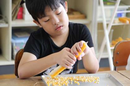 あすなろ学級の生活単元と総合の授業の様子をお知らせします。生活単元では、ポップコーン用のトウモロコシを1粒1粒取る活動をしました。
