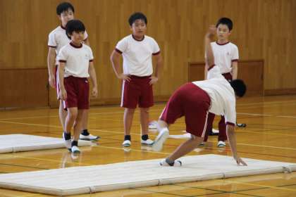 6年生体育 公開日 2023/09/25 更新日 2023/09/25 お知らせ 6年生の体育「マット運動」の授業の様子をお知らせします。鉄棒や跳び箱に比べ、恐怖心が少なくできますが、マット運動もできる、できないがはっきりするので、消極的になってしまう子が多く見られます。 ポイントは、ここです、いかにたくさん挑戦したかがまず大切。次に、どこを意識して行ったかがです。できない技に挑戦もいいですが、できる技をより大きく、より美しくという視点も大切にしてほしいと思います。