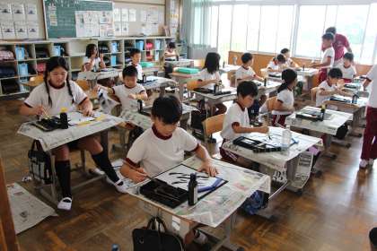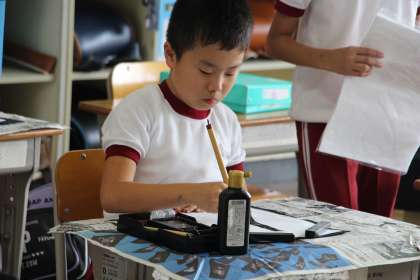 4年生書写 公開日 2023/09/28 更新日 2023/09/28 お知らせ 4年生の書写「毛筆 人」の授業の様子をお知らせします。「人」の字は、左右のはらいを組み合わせた字です。 はらいの難しさは、筆の抜き方です。起筆、送筆、収筆をいかに力を抜きながらはらうかがポイントです。
