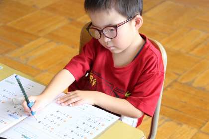くすのき学級の国語と算数の授業の様子をお知らせします。国語は短冊に「にょきにょき」の文字を書きました。算数は、繰り下がりのあるひき算です。わからない問題は、サクランボ算を使いながら学びました。