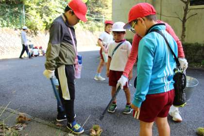 あすくす学級「栗拾い」 公開日 2023/10/02 更新日 2023/10/02 お知らせ あすくす学級の栗拾いの様子をお知らせします。朝晩の冷え込みも体感できるようになりました。昼間との気温差が大きいので、体調管理には十分注意してください。 さて、本校では、見出しのように「栗拾い」ができる環境にあります。本時は、あすくす学級と1年生が栗拾いを体験しました。